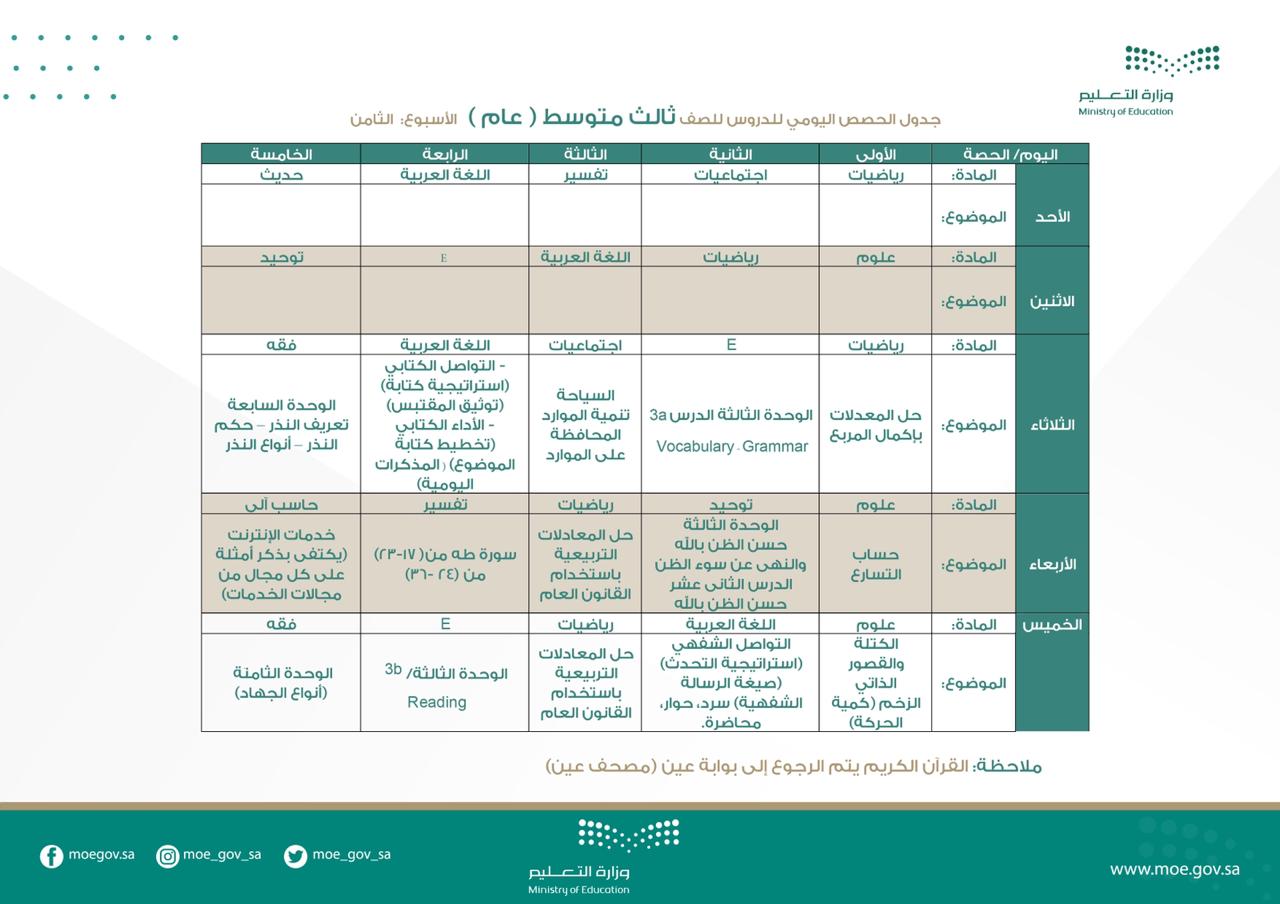 وزارة التعليم عام On Twitter جدول الحصص اليومي لدروس الصفوف الأول والثاني والثالث المتوسط عبر قنوات عين على تردد عربسات 12437 عمودي فى بث مباشر من الساعة 8 ص إلى الساعة